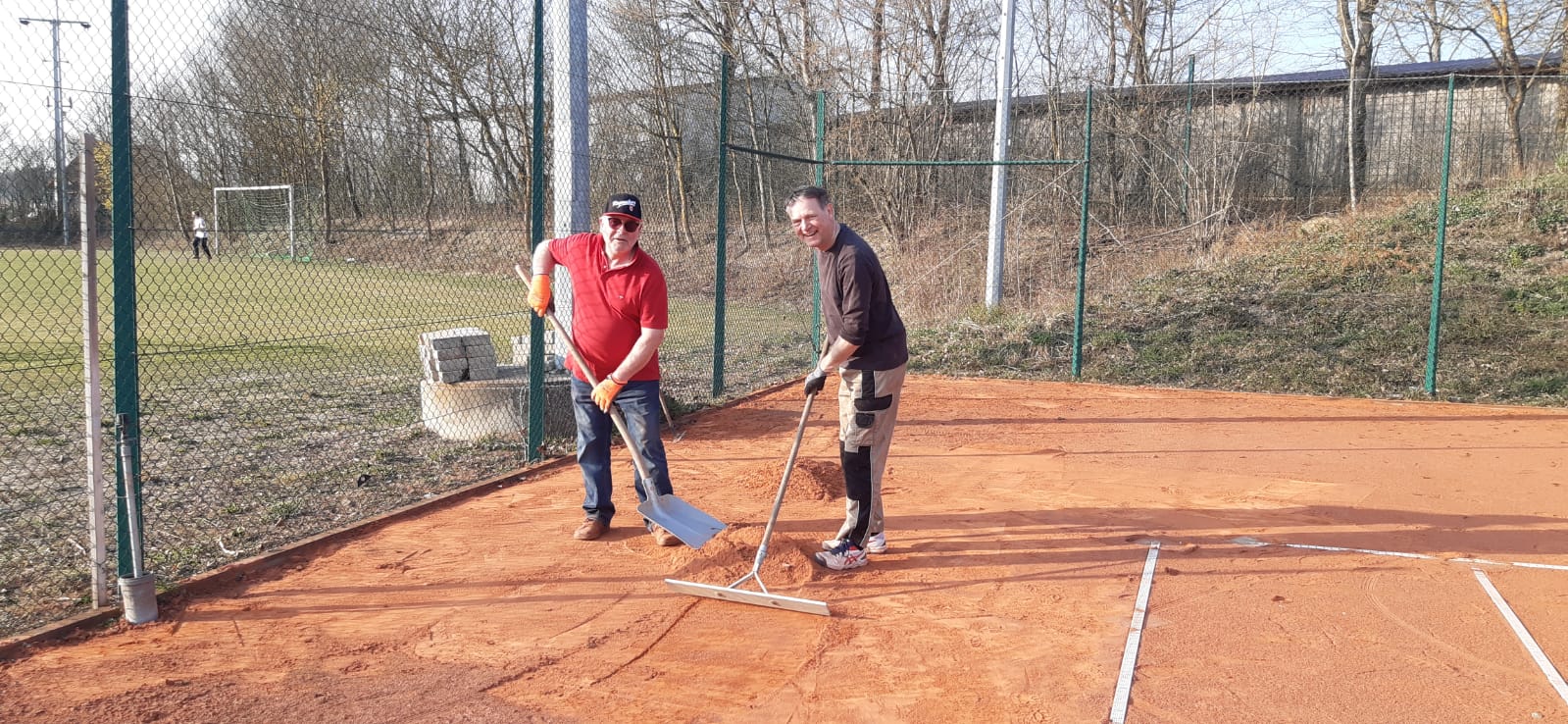 Die ersten Arbeitseinsätze für die Vorbereitung der Tennisplatzanlagen fanden vergangenen Freitag und Samstag statt. Dankeschön an die Helfer, die hier tatkräftig zur Stelle waren. Zur Präparierung der Tennisplätze wurden die Steine von den Linien weggenommen und gestapelt. Die Plätze wurden anschließend von Laub gesäubert, der alte Sand abgetragen, zum Werkstoffhof abtransportiert und in den Bauschuttcontainer geschaufelt.